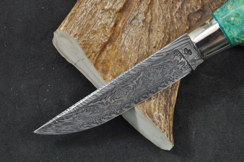 Авторский нож купить с клинком из мозаичной дамасской стали кузнеца Матвеева .