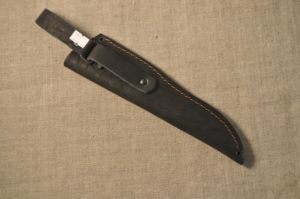 Оптимальный размер ножа для ножения с этими ножнами - общая длина около 240 мм, сечение ручки на входе в ножны 20х32 мм или чуть более. Пример такого ножа - http://www.artwood.ru/catalog/view/4409.html