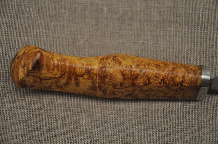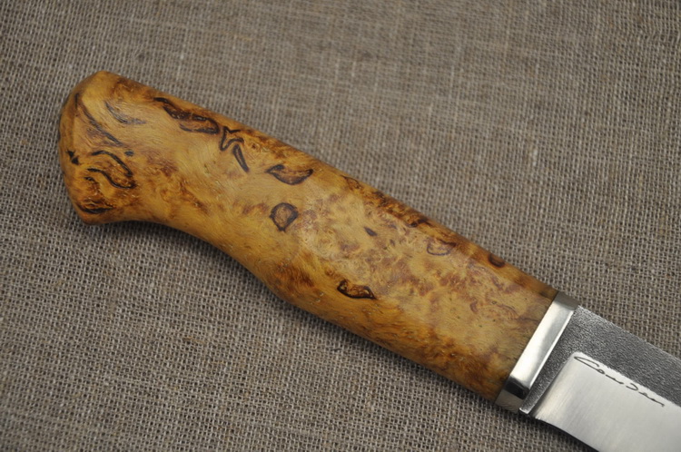 Рукоять: стабилизированная Карельская береза, мельхиор ,