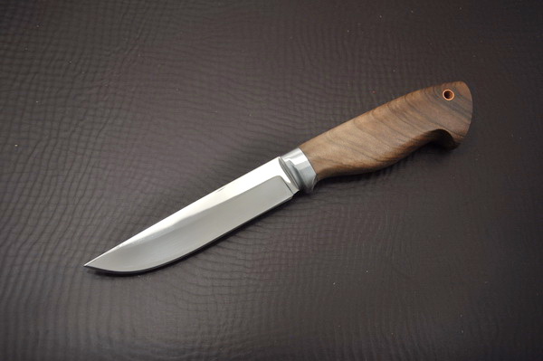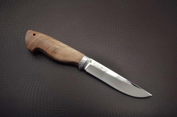 Лёгкая удобная в руке финка с узким клинком из хорошей нержавеющей кованой стали. Купить нож охотничий с клинком из нержавеющей стали 95Х18 в ножнах финского типа из натуральной кожи .