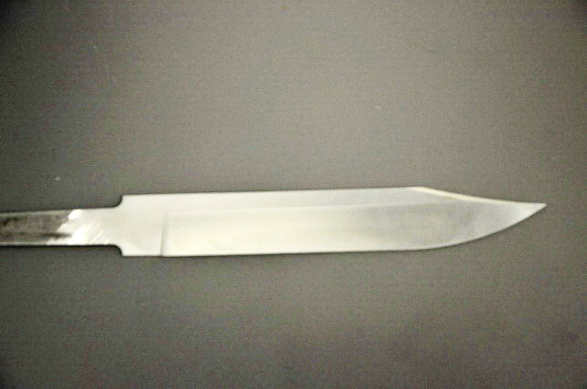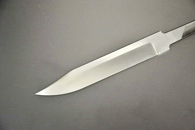 Клинок: кованая коррозионно-стойкая легированная сталь Х12МФ, твердость 60HRC , спуски вогнутые, поперечное сатинирование (вариант - полировка в зеркало), укороченный носик - щучка с фасками , не заточен, хвостовик без резьбы.