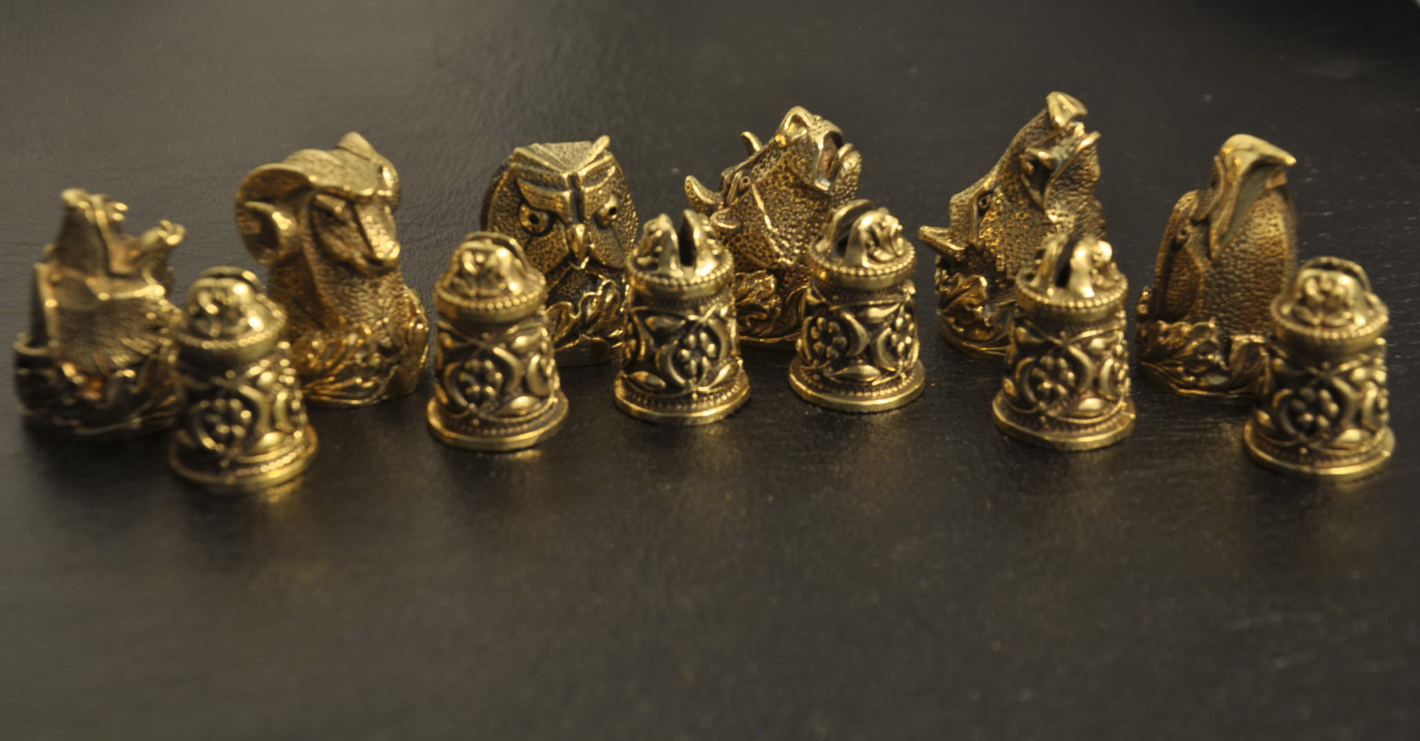 Тыльники в виде голов медведя, орла, совы, быка, барана, кабана в обрамлении дубовых листьев .