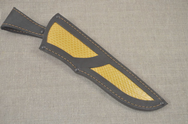 Ножны - кожа телячья натуральная черная , вставка - натуральная кожа гадюки , цвет желтый