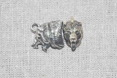 Литьё из латуни , патинирование, полировка. Навершие с кольцом, тыльник , пятка для брелка, подвески, кулона. Данное изделие используется в первую очередь для изготовления брелков с когтями медведя среднего размера.