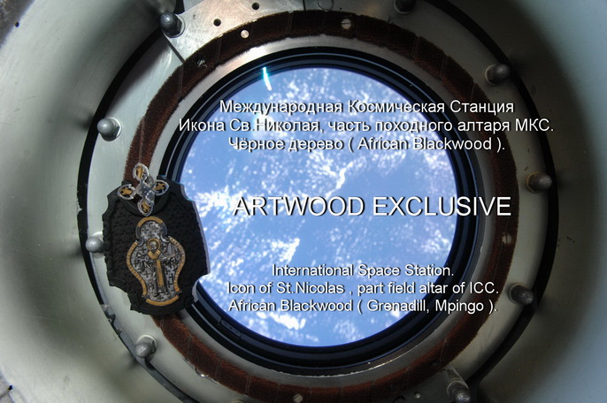 Икона святого Николая из Черного дерева - часть походного алтаря Международной Космической Станции .