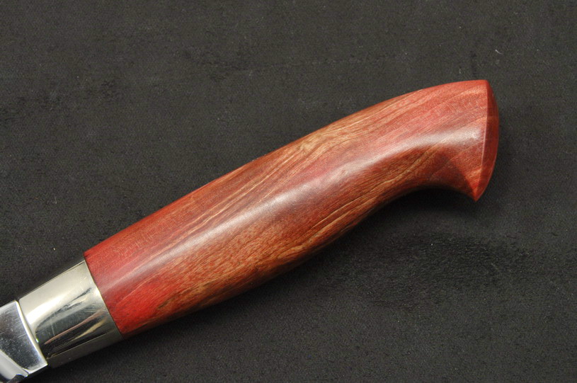 Рукоять: стабилизированная карельская береза, мельхиор .