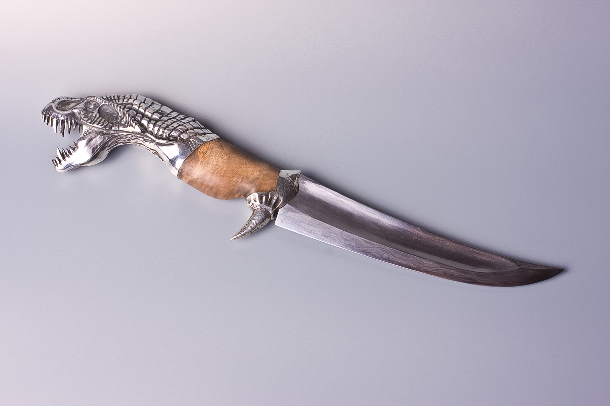 Кинжал авторский коллекционный с клинком из дамасской стали купить в подарок мужчине.