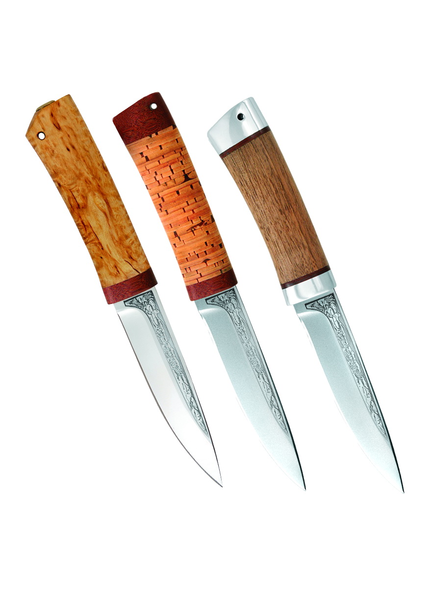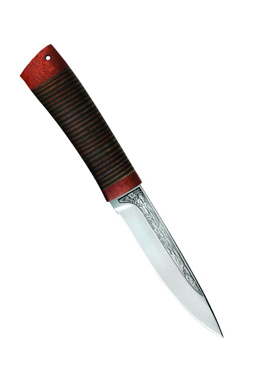 Средний по размерам, универсальный легкий и прочный нож с клинком, имеющим чуть приспущенный к острию обушок. Вогнутые линзовидные спуски от половины ширины клинка образуют тонкое изумительно режущее лезвие. Толщина обуха в 2,4 мм позволяет оставить приличную голомень, что придает ему дополнительную прочность. Клинок имеет довольно острый угол острия, что прекрасно подходит для вспарывания брюшка любой величины рыбы, через он. отверстие движением от себя в сторону нижней челюсти. Эргономичная форма рукояти идеально ложится в любую ладонь. Монтаж клинка сквозной не разборный. На навершии рукояти имеется отверстие под темляк. Замечательный выбор для любителей рыбной ловли.