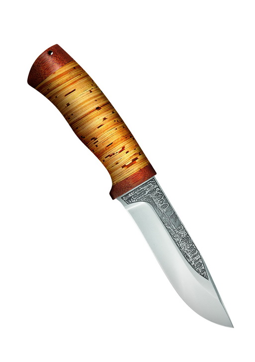 Средний универсальный легкий и прочный нож с клинком, имеющим популярный обушок с прямым скосом. Пологие вогнутые линзовидные спуски от середины клинка образуют тонкое прекрасно режущее лезвие. Демонстрирует отличные режущие качества. Толщина обуха в 2,4 мм позволяет оставить широкую голомень, что придает клинку дополнительную прочность. Эргономичная форма рукояти уверенно и прочно ложится в любую ладонь, даже в рукавице. Оптимальной величины гарда не дает соскользнуть пальцам при резах от себя. Монтаж клинка сквозной не разборный. На навершии рукояти имеется отверстие под темляк. Отличный выбор для большинства видов работы в лесу.