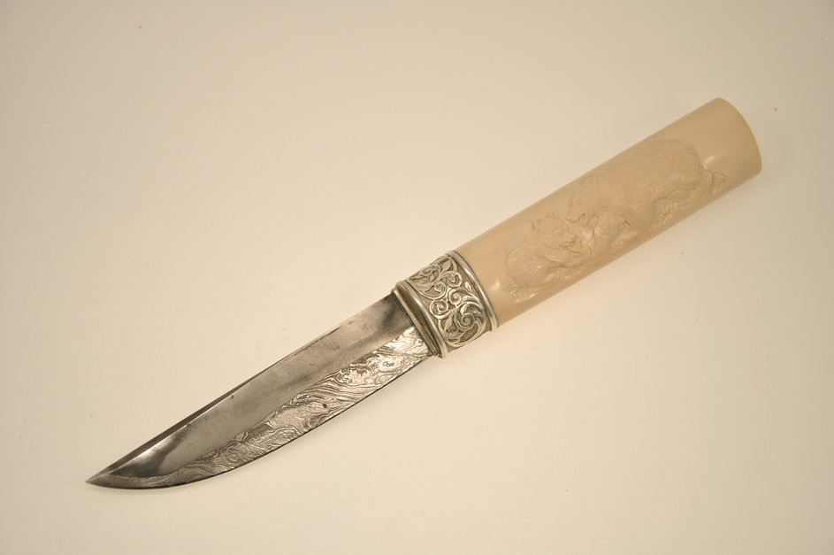 Рукоять: бивень мамонта, серебро, резьба