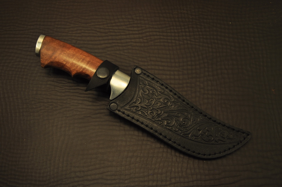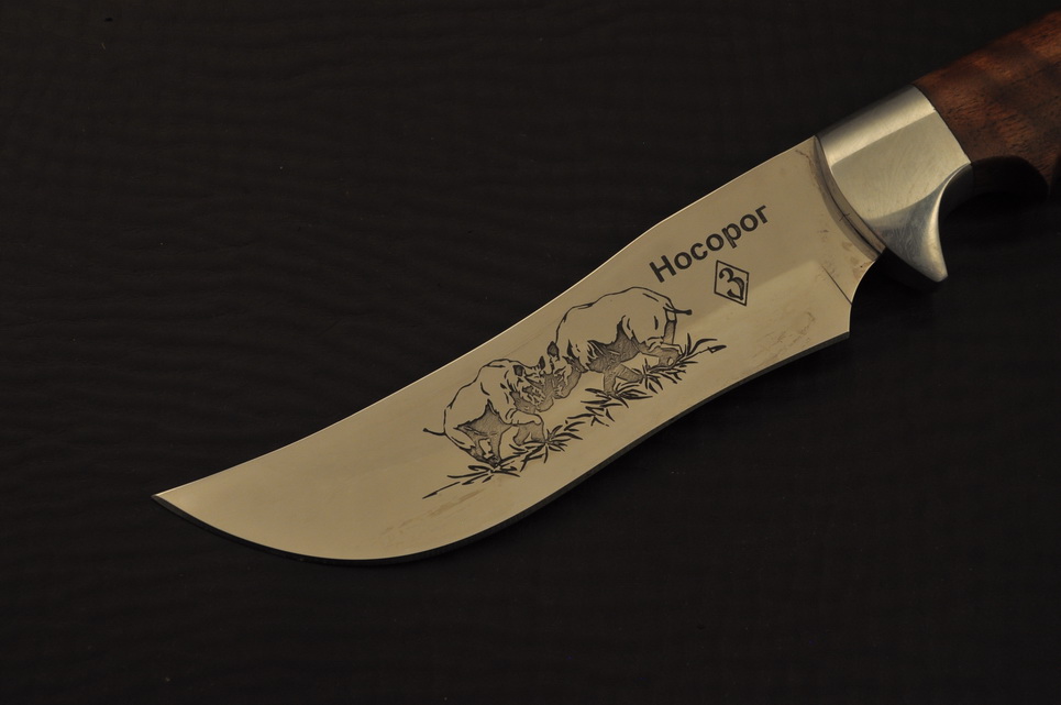 Клинок: нержавеющая сталь 65Х13, спуски бритвенные, гравировка, твердость 55 HRC