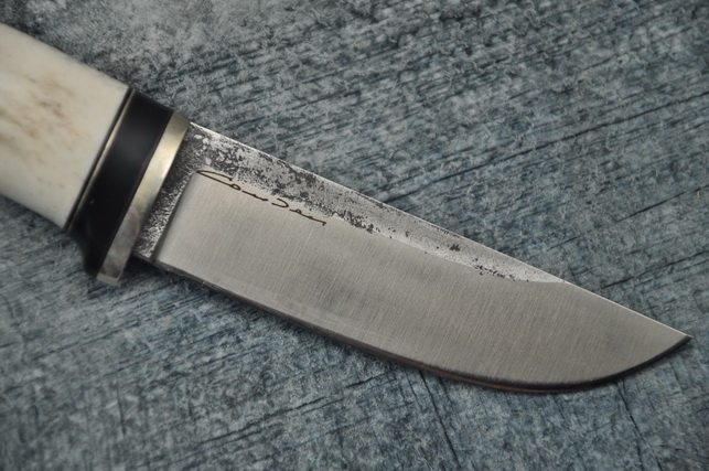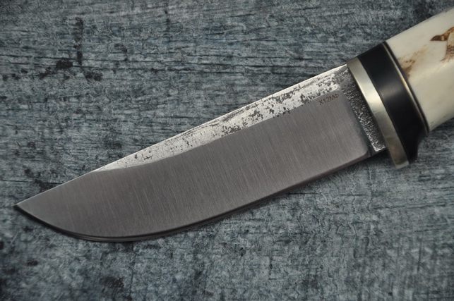 Клинок этого ножа изготовлен из стали Х12МФ, считающейся одной из лучших сталей для ножей по соотношению цена-качество. Сталь Х12МФ является корозионно-стойкой, мало уступая нержавеющим сталям по сопротивлению короззии, но при этом имеет значительно более высокие характеристике по длительности реза, что обусловлено наличием в стали Х12МФ повышающих прочность и твердость хрома и молибдена. Оптимальной твёрдостью для рабочего охотничьего ножа с клинком из стали Х12МФ является твёрдость 58-59 HRC.