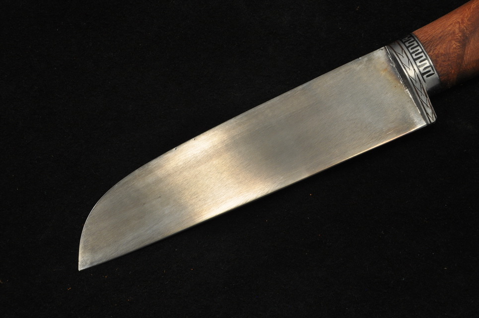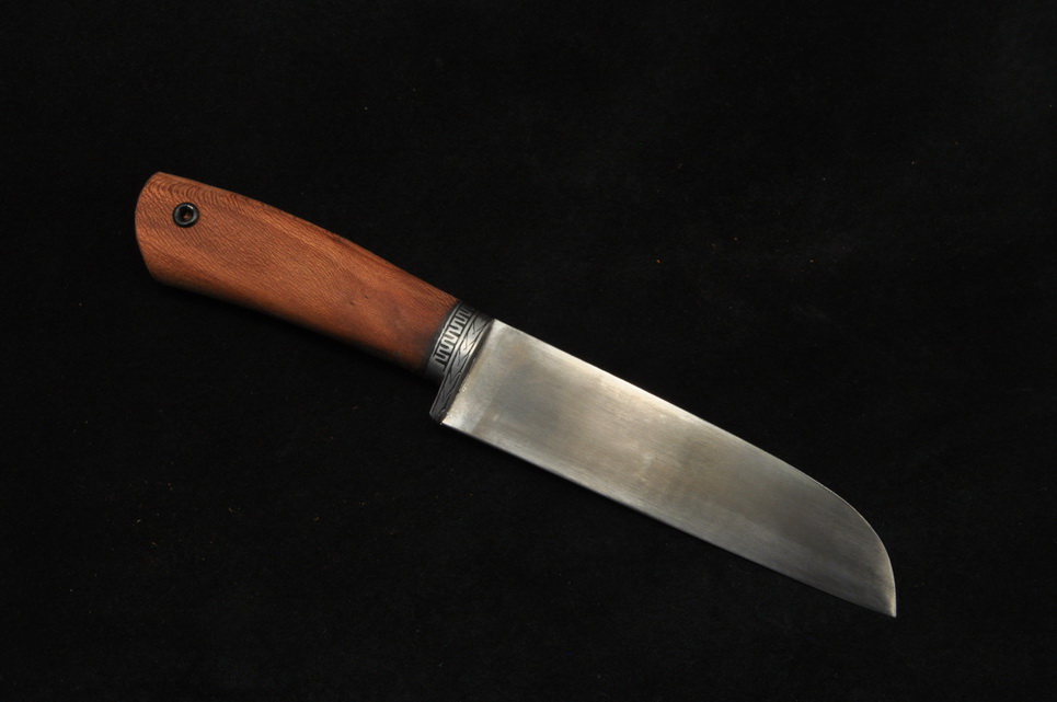 Если вы привыкли к твердости кухонного ножа от 60HRC, выбирайте Пчак с клинком из стали Х12МФ Нож кухонный Узбек , кованая сталь Х12МФ , К-105 или из дамасской стали Нож Узбекский Пчак, дамаск , рог лося