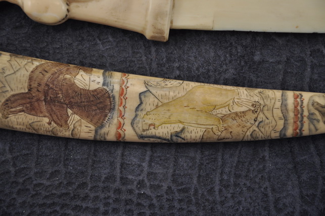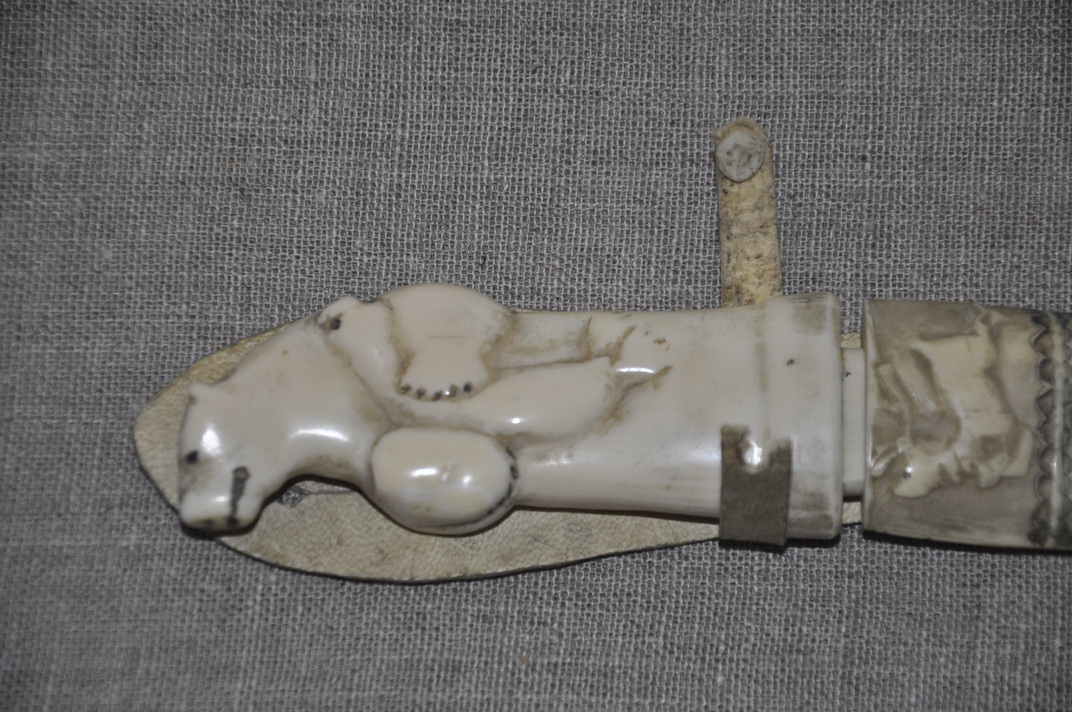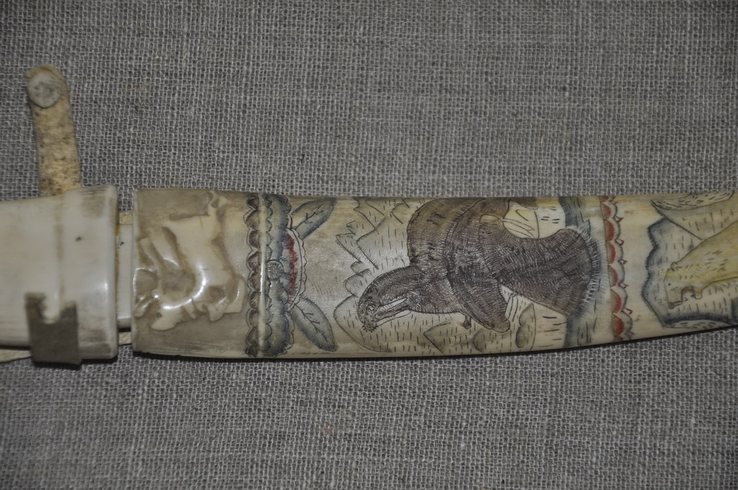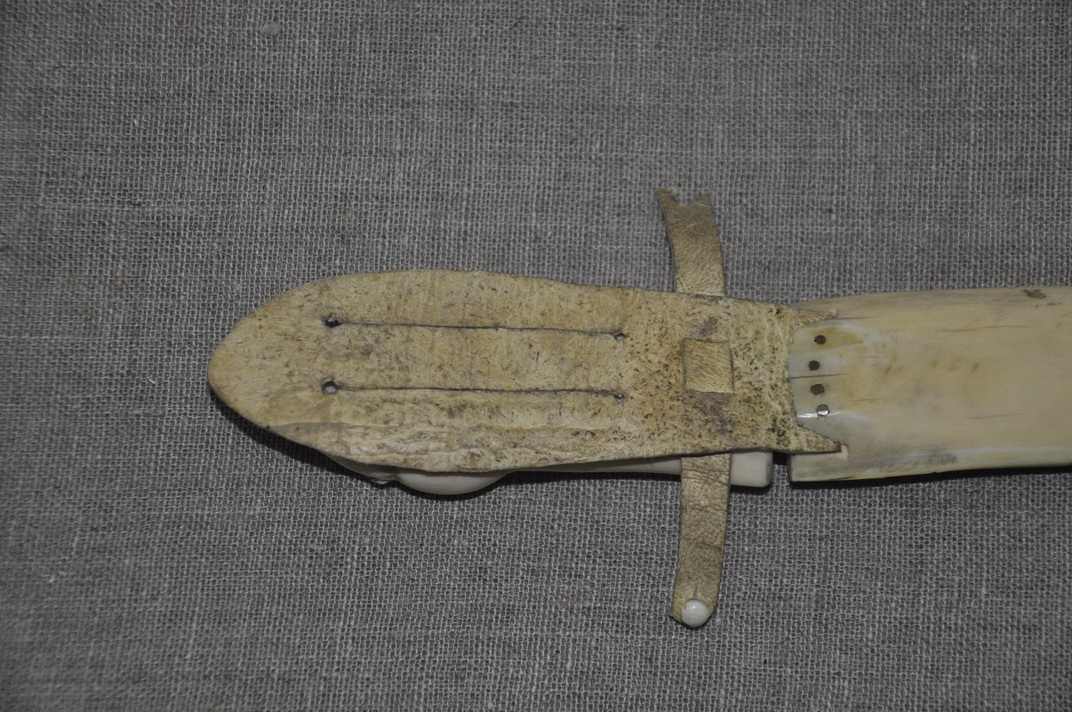 Ножны: клык моржа , резьба, кожа .