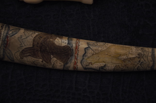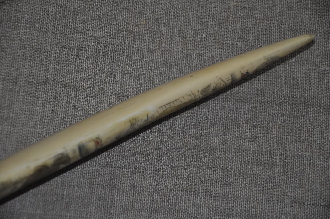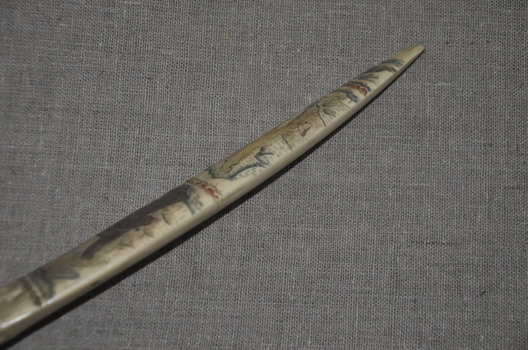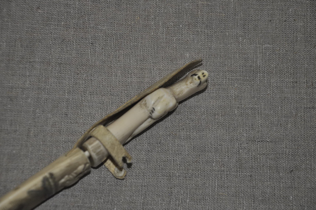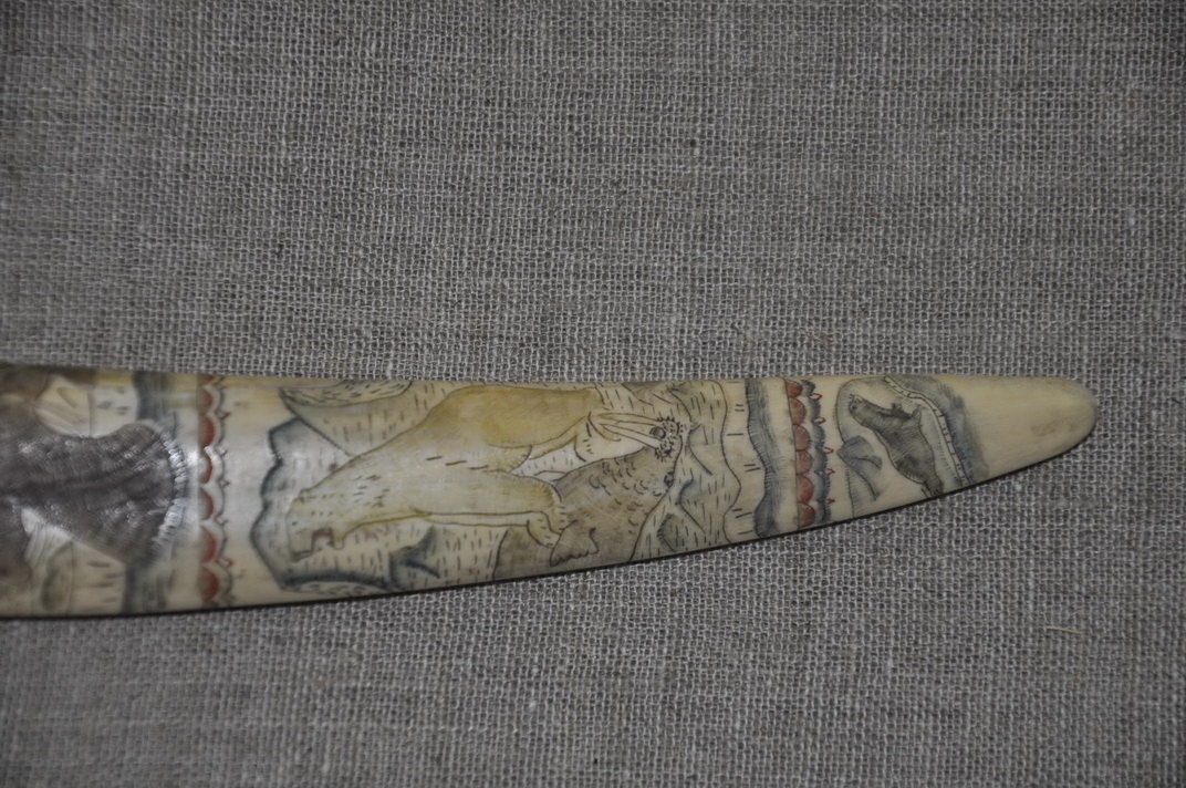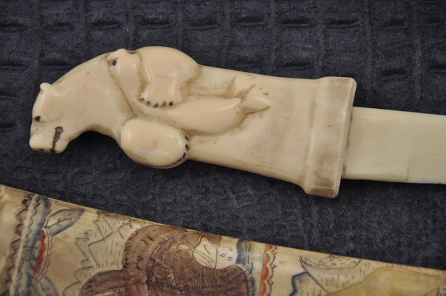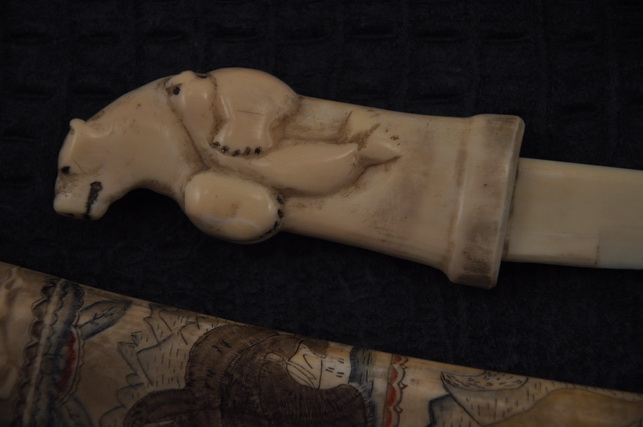 Рукоять: клык моржа , резьба .