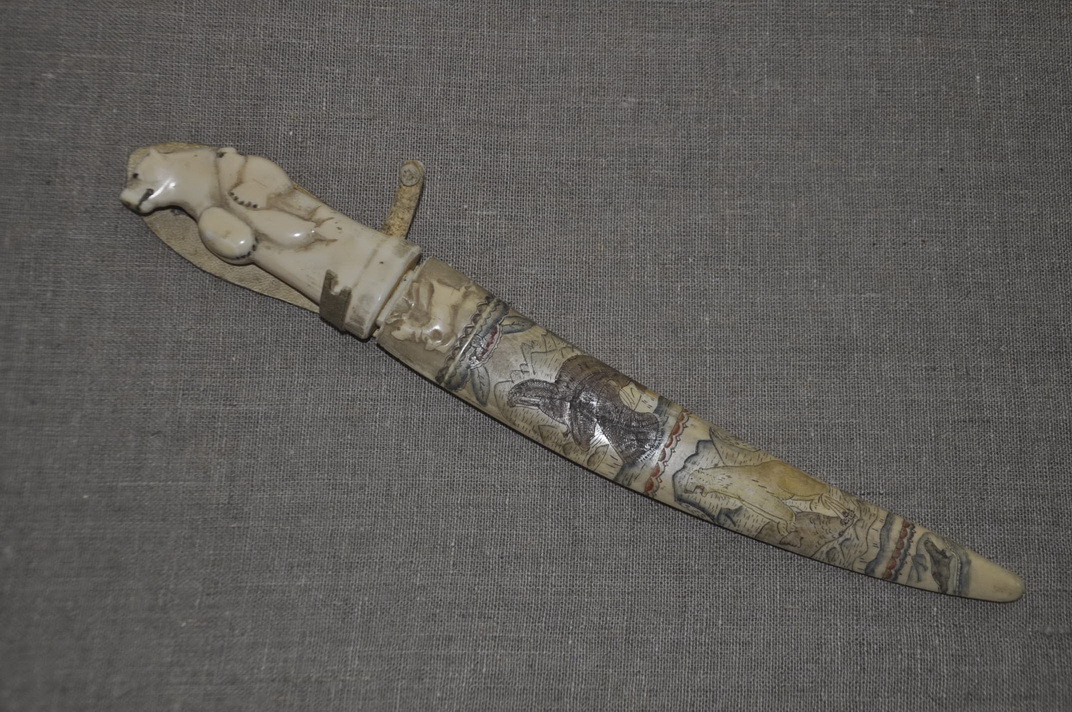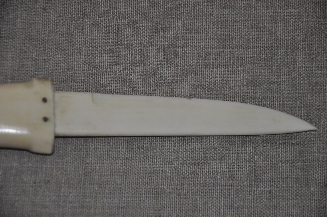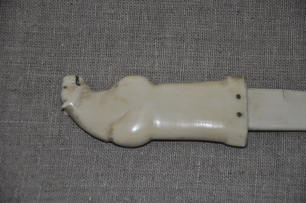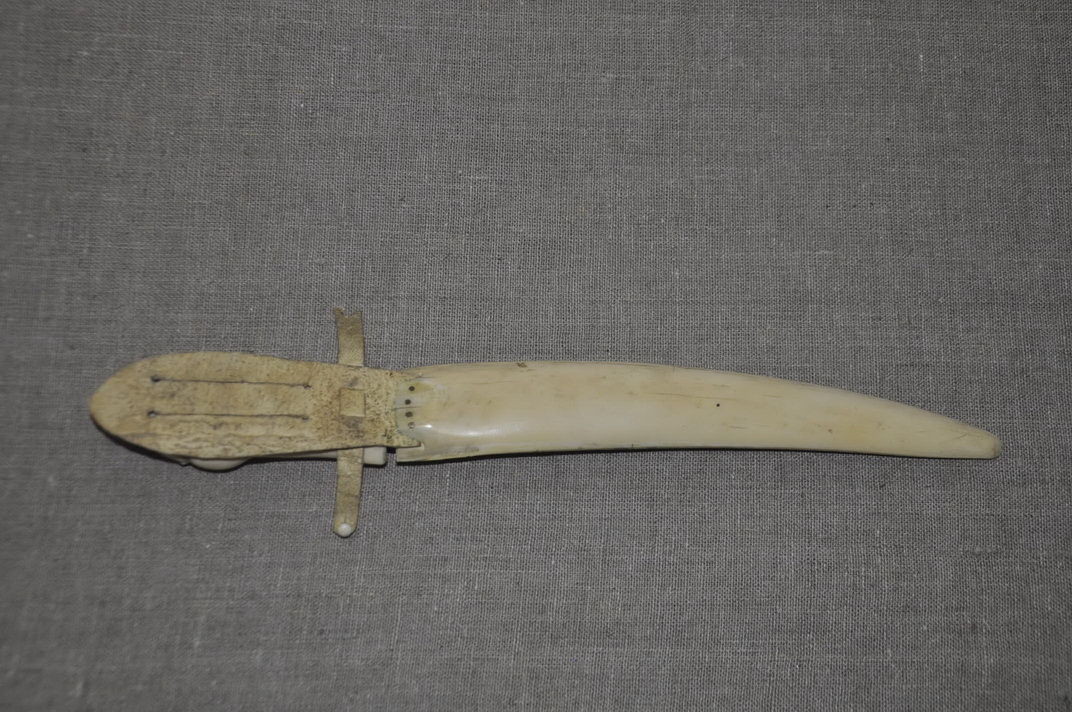 Костяной нож из клыка моржа, Чукотка, период изготовления ориентировочный 1950-1960 гг.