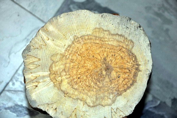 Карельская берёза , спил бревна, сердцевинная трещина, шлифовка..