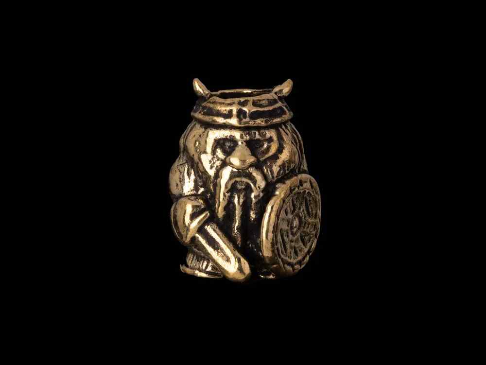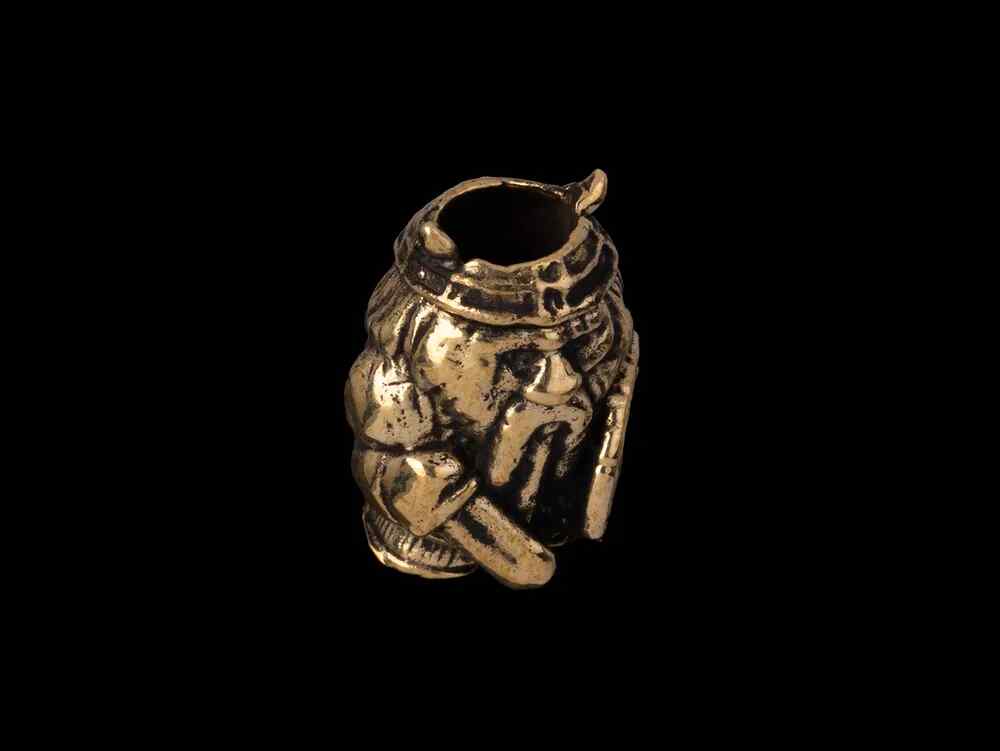 Бусина, подвес на темляк Викинг в рогатом шлеме , литье латунь. Размеры 10х10х17 мм. Литье не обработано, может иметь неровности,: требует шлифовки, полировки, размеры могут незначительно отличаться от указанных.