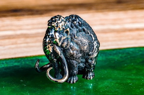 Фигурка, статуэтка , миниатюра коллекционная "Мамонт", латунь патинированная, размер 10х20х24 мм.