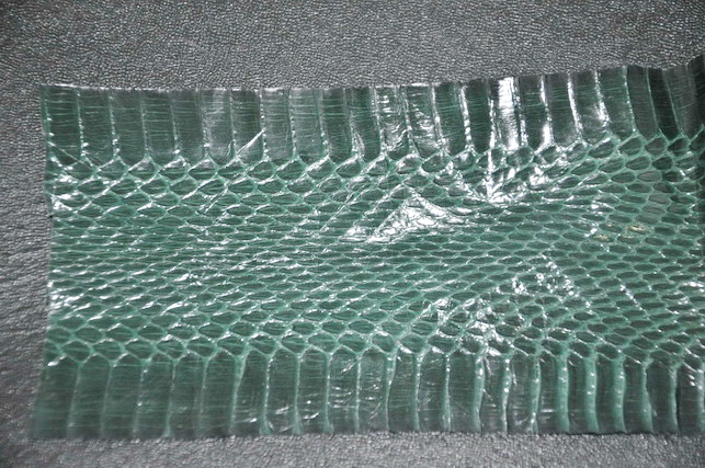 Кожа змеи натуральная, спинка, цвет тёмно-зелёный глянец (на фото под вспышкой выглядит светлее), размер макс 130х1450 мм