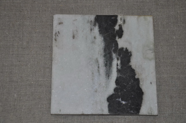 Мрамор натуральный чёрно-белый , размеры 10-11х148-150х148-150 мм, вес 690 гр., одна сторона полированная, происхождение - Мозамбик .