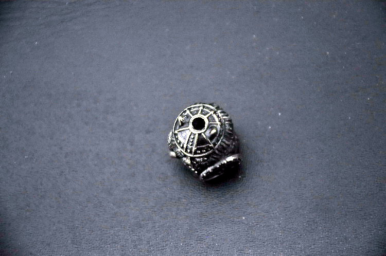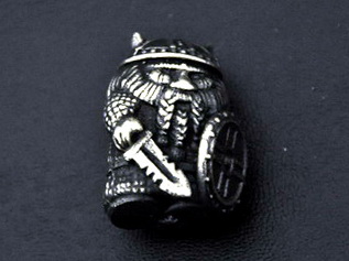 Вес 58-60 грамм, имеется сквозное отверстие диаметром 3-3,5 мм., в качестве бусины на темляк может показаться излише тяжёлой, идеально использовать в качестве солдатика, детской игрушки, оригинальной фигурки для игры "Монополия" .