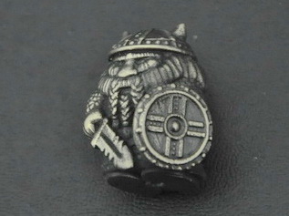 Фигурка, игрушка, бусина, подвес на темляк Викинг в рогатом шлеме с мечом и щитом, литье латунь патинированная. Размеры 21х24х30 мм. размеры могут незначительно отличаться от указанных.