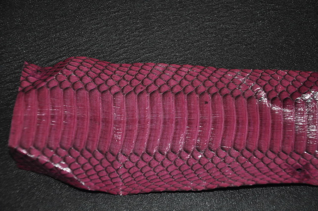 Кожа гадюки натуральная, живот, цвет розовый с черным , размер по центру 50х250 мм., толщина как у бумаги. Для изготовления ножен или рукояти ножа или кинжала