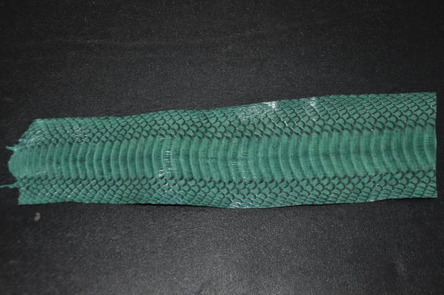 Кожа гадюки натуральная, живот, цвет зелёный с черным , глянец, размер 80-90х540х630 мм., толщина как у бумаги. Для изготовления ножен или рукояти ножа или кинжала
