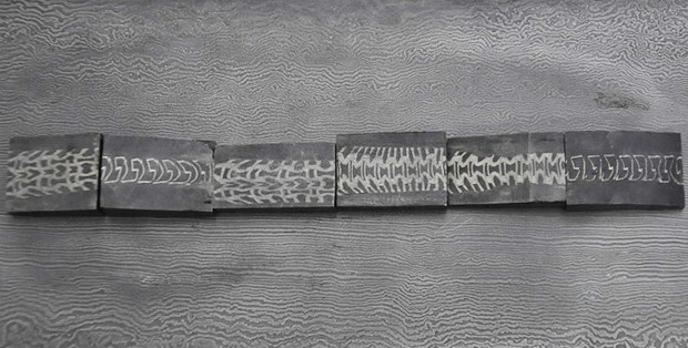 Мозаичный дамаск - альтернатива мокуме , тимаскусу - эксклюзивный материал для изготовления самых разных изделий - кулоны, броши, кольца, подвески, кулоны , браслеты и другие ювелирные изделия, вставки в рукоять ножа , статуэтки , интерьерные изделия - ничто не ограничивает вашу фантазию в применении заготовок из мозаичной дамасской стали .