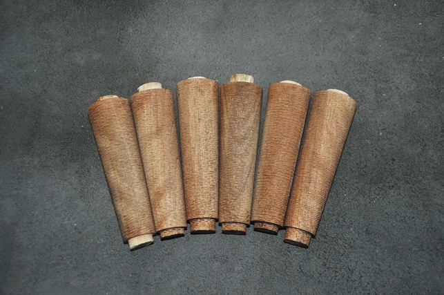 Рекомендуем финишную обработку деревянных рукоятей Воск карнаубский с пчелиным воском, мастика темная 100 мл. , заготовки на фото покрыты данным маслом в один слой .