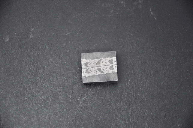 Заготовка из мозаичного дамаска , пакет углеродистых сталей с никелем, закалка, травление . Размеры в мм : диапазон по толщине 4-5, сечение 22х24, вес 22гр., возможны каверны, сколы, допустим незначительный налет ржавчины . Для защиты от коррозии готовых изделий рекомендуем использовать лаки для металла или альтернативные защитные составы.