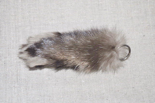 Подвеска, брелок, оберег с кольцом из лапки соболя с натуральным мехом и когтями, размер примерный 3х5х130 мм.